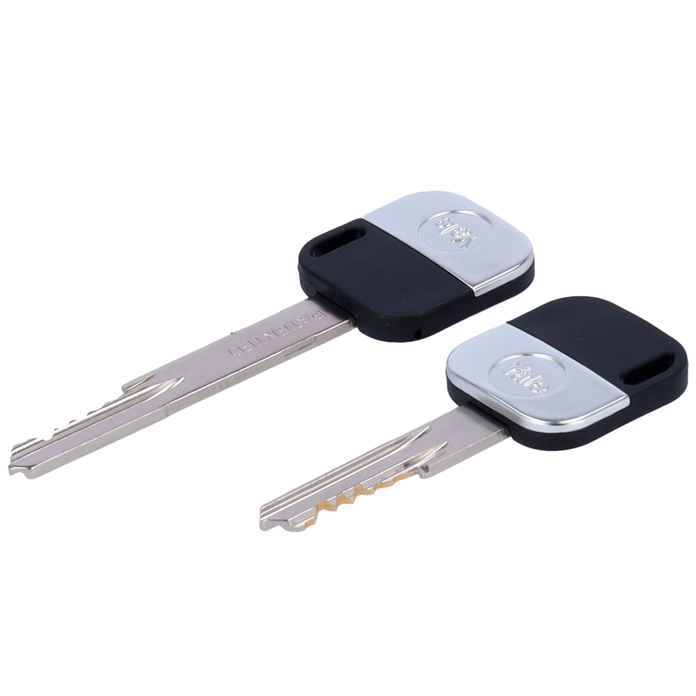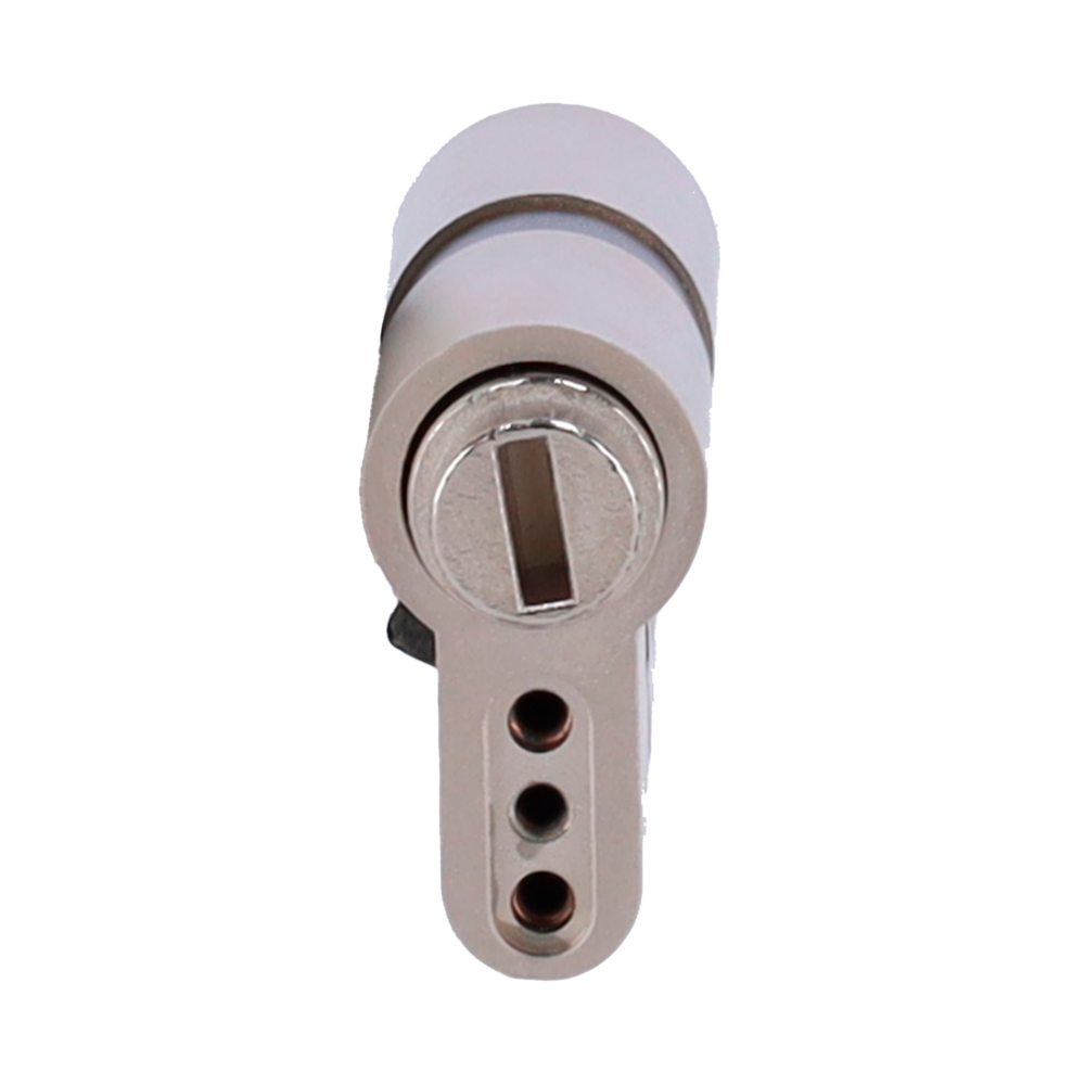 Cilindro de embraiagem duplo ajustável. Anti-bumping, lock-picking e drilling. Apto para YALE-LINUS-L2. Sistema de serra 6 pinos. Dimensões de 30 x 30 mm a 60 x 65 mm. Inclui 2 chaves físicas